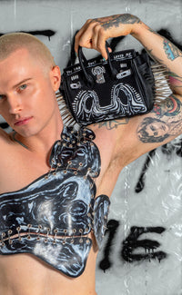 This bag is currently being exhibited in the UK in partnership with gone rogue gallery. No taxes or shipping will be charged at checkout. You will be contacted by the team at gone rogue to calculate applicable delivery charges.