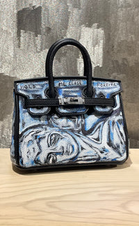 This bag is currently being exhibited in the UK in partnership with gone rogue gallery. No taxes or shipping will be charged at checkout. You will be contacted by the team at gone rogue to calculate applicable delivery charges.