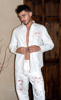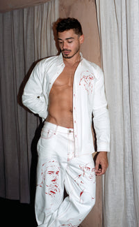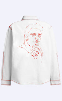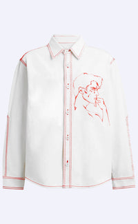 Made from sturdy heavyweight fabric with eye-catching red contrast stitching, it showcases Patrick Church's original artwork in this new limited edition shirt. The loose fit keeps things comfortable and casual, whether you're wearing it buttoned up or thrown open over the matching halter, this is the kind of shirt that will be your next go to.