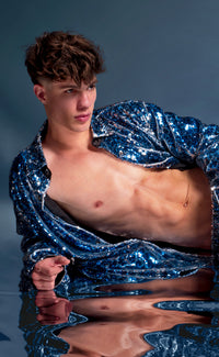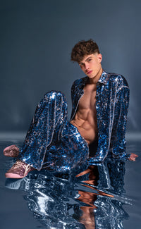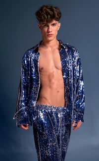 Let's get wild in this limited edition 'Leopard' Sequin Set. The bold double-sided blue and white sequins transforms the iconic set from Patrick Church. This set includes both a shirt and pant for a complete look.
