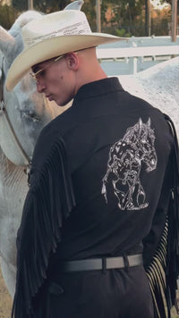 Introducing the Western-inspired “Born To Ride” fringe jumpsuit from Patrick Church. Showcasing his exclusive embroidered artwork on both the front and back, this limited-edition design—only 100 pieces produced—is truly art in motion.