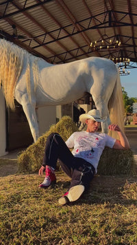 Introducing the Western-inspired “Born To Ride” Retro Fit T-shirt from Patrick Church. Showcasing his new exclusive artwork on the front, this limited-edition design—only 100 pieces produced—is truly art in motion.