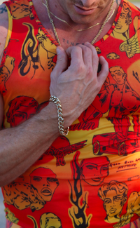 Lifted from the personal diary of Patrick Church, this mesh tank is covered in dozens of personal and archival drawings, making it a truly special piece. Limited Edition of 100.