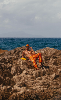 Relaxed fit pants. Front pleats at waist. Front pockets and back welt pockets. Front zip and button closure.